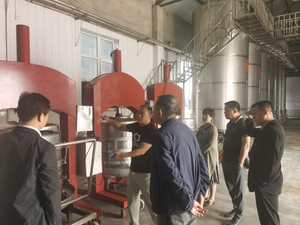 在辽宁桓龙湖葡萄酒酿造有限公司,服务团专家参观了企业葡萄酒发酵车间、陈酿车间、灌装生产线,细致了解企业现有工艺并提出工艺改进的方向。服务团团长沈农食品产业研究院院长孟宪军教授从葡萄酒国内市场现状、产品提升方向、企业与产业研究院未来合作等方面与企业进行了深入交流,确定了服务团依托产业研究院开展企业服务的模式,从工艺提升、新产品研发、产品科技背书、拓展产品销路等开展服务工作。