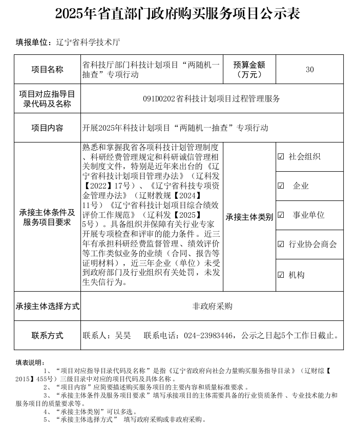 2025年省直部门政府购买服务项目公示表(快看漫画 部门科技计划项目“两随机一抽查”专项行动)