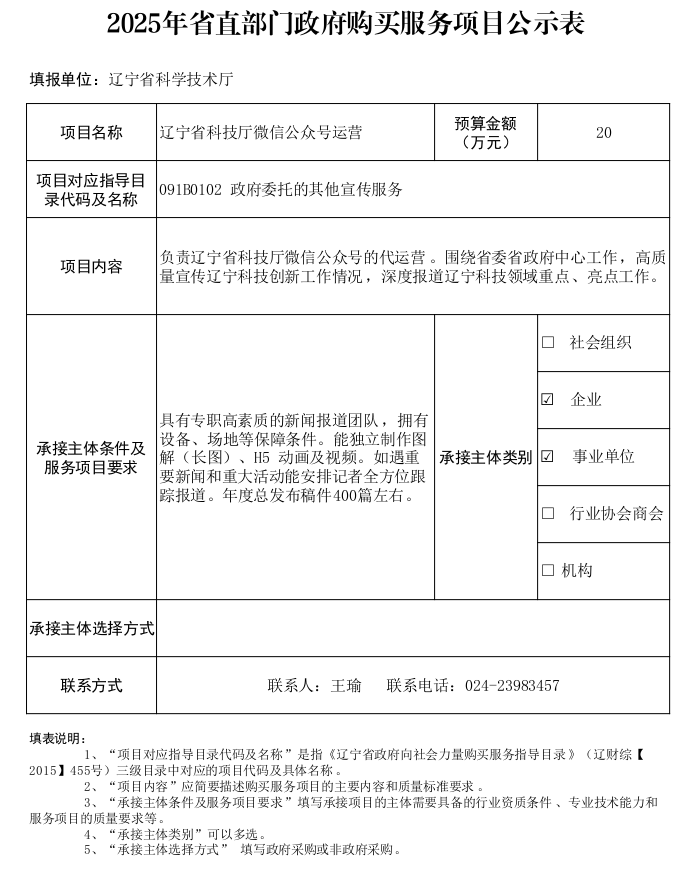 2025年省直部门政府购买服务项目公示表(辽宁快看漫画 微信公众号运营)