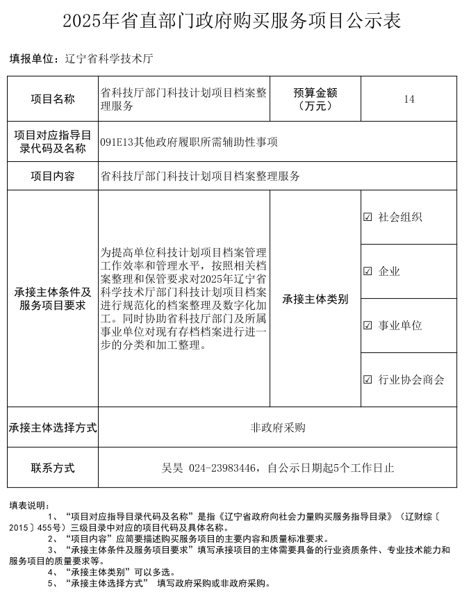 2025年省直部门政府购买服务项目公示表(快看漫画 部门科技计划项目档案整理服务)